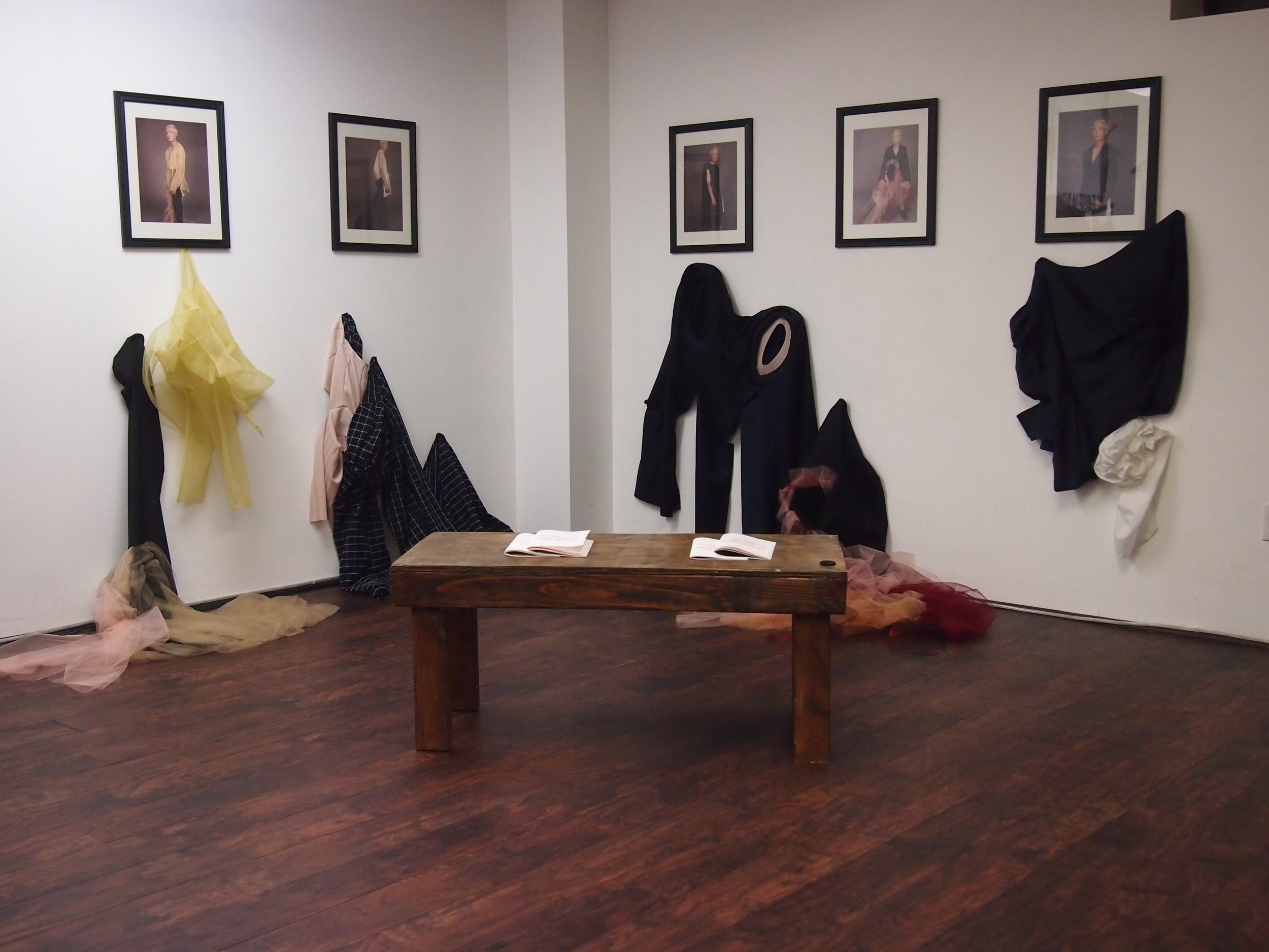 This collection of garments explores the artist's sense of identity residing in multiple interlocking worlds--between Vietnam and America, male and female, citizen and immigrant. They attempt to translate these voided spaces into figures that are more concrete and familiar by superimposing their own image onto their father, Quan, to create an avatar of ideal self.